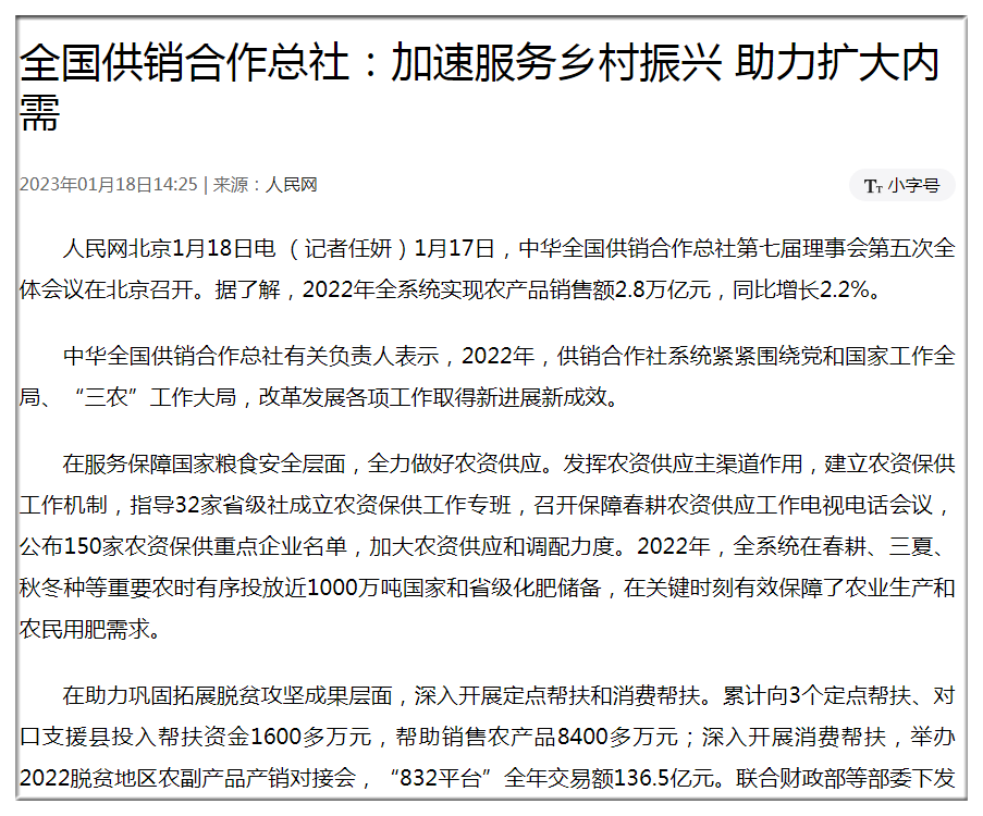 【人民網(wǎng)】全國供銷合作總社:加速服務(wù)鄉(xiāng)村振興 助力擴(kuò)大內(nèi)需