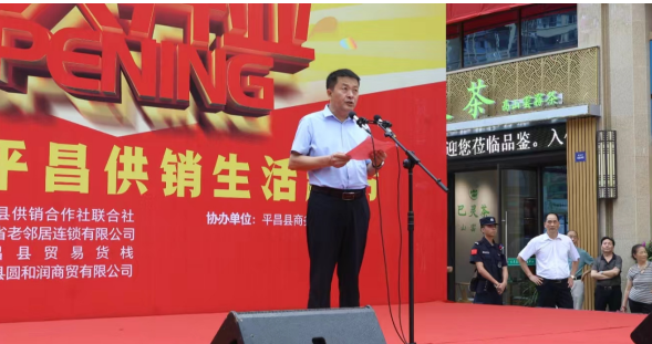 7月20日,老鄰居?平昌供銷生活超市隆重開業(yè)。省供銷社企業(yè)發(fā)展與金融服務(wù)處處長楊韜,省老鄰居連鎖公司董事長許宏勇及省供投集團(tuán)部分子公司負(fù)責(zé)人,巴中市供銷社黨組書記、理事會(huì)主任劉羽,平昌縣委副書記、縣長杜小兵,縣委常委、副縣長李寶出席活動(dòng)。平昌縣委副書記曹光輝代表縣委政府致辭。省供銷投資集團(tuán)董事長茍學(xué)川宣布正式開業(yè)。