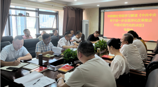 8月22日上午,市供銷社黨組召開(kāi)專題會(huì)議,學(xué)習(xí)解讀《中共中央關(guān)于進(jìn)一步全面深化改革推進(jìn)中國(guó)式現(xiàn)代化的決定》(以下簡(jiǎn)稱《決定》)。黨組書(shū)記、理事會(huì)主任劉羽主持會(huì)議并講話。市社機(jī)關(guān)全體干部職工、直屬企業(yè)負(fù)責(zé)人參加會(huì)議。