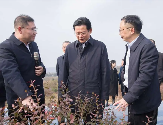 在秋錦山村,蔡邦銀一行實地查看了當(dāng)?shù)厮{(lán)莓的種植情況,并就藍(lán)莓產(chǎn)量產(chǎn)值和市場銷售情況與相關(guān)負(fù)責(zé)人進(jìn)行了深入交流。他要求,要從產(chǎn)業(yè)培育、精深加工等方面持續(xù)發(fā)力,不斷延伸藍(lán)莓產(chǎn)業(yè)鏈,進(jìn)一步推動藍(lán)莓產(chǎn)業(yè)轉(zhuǎn)型升級,拓寬農(nóng)民增收致富渠道,更好發(fā)揮項目聯(lián)農(nóng)帶農(nóng)的作用,為推進(jìn)鄉(xiāng)村全面振興提供產(chǎn)業(yè)支撐。